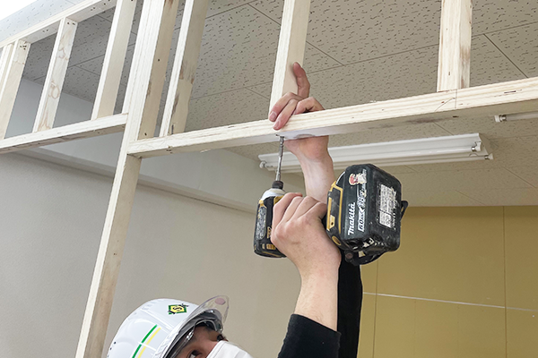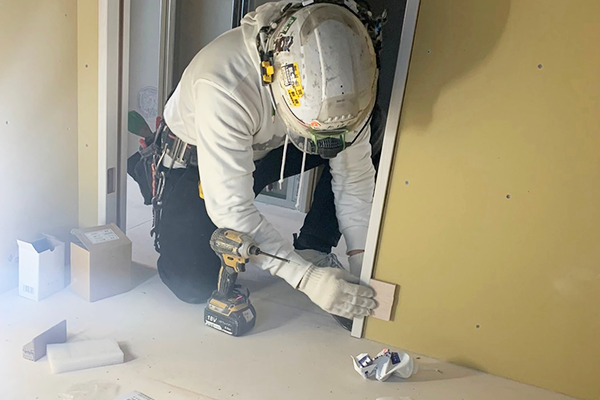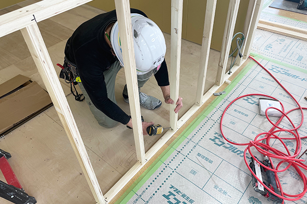 木造住宅の建物内部の下地を作り上げていく工事をいいます。窓となる場所に台を製作したり、扉となる場所に建具を取り付ける枠を製作するなど、完成する建物をイメージしながら工事を行います。